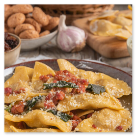 Pasta fresca con salmì di lepre, brasato di cinghiale con polenta,